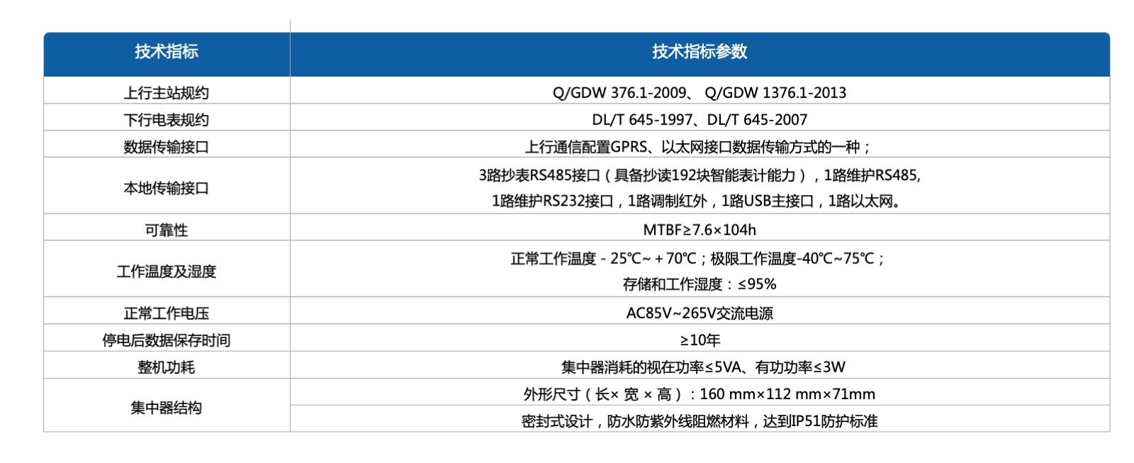 AC85V~265V交流电源能维持集中器正常工作。预防电压不稳定导致的设备损坏
