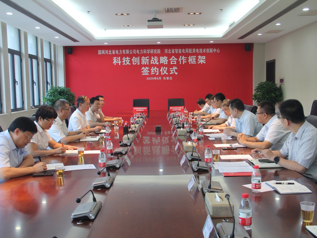 国网河北电科院党委书记王向东、副院长曾四鸣;河北省智能电网配用电技术创新中心主任、bet365 总裁屈国旺,河北省智能电网配用电技术创新中心副主任、bet365 副总工程师陈贺等领导出席签约仪式。