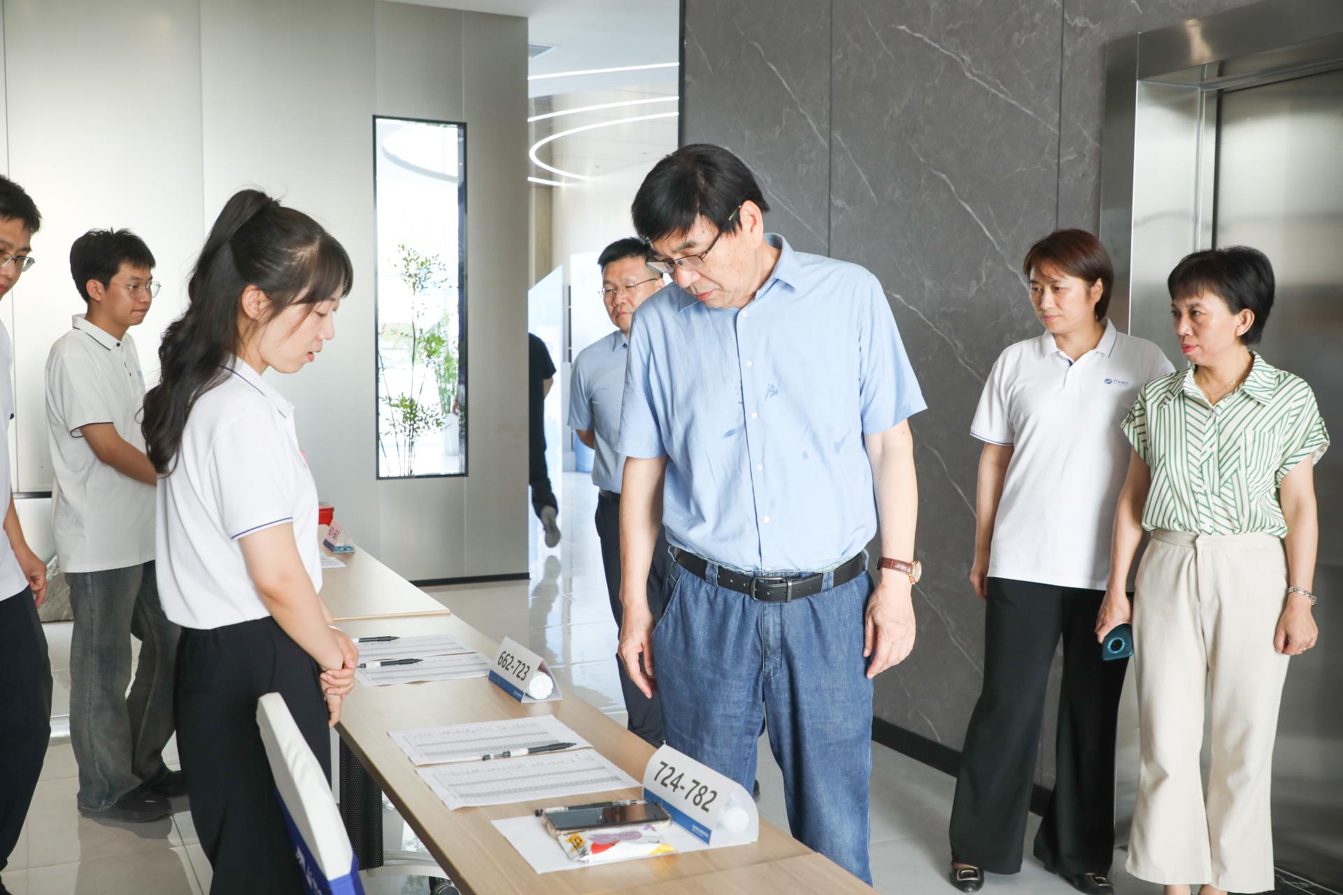 张成锁董事长在总裁办、人力资源部、发展部等工作人员的陪同下,驻足了解了迎新工作进展、新员工报道情况和暖心服务工作,并对人力资源部扎实有效、别具匠心的做法给与充分肯定。希望大家继续以良好的精神面貌做好周到细致的服务。