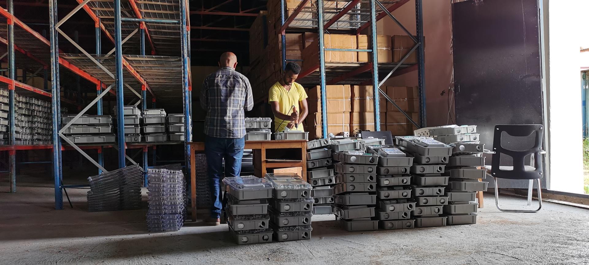 这次的任务主要是去升级三相表的程序,来解决继电器驱动电路的问题。说简单也简单,就是用程序烧写盒逐一升级;但说复杂也复杂,这6000块三相表,除了1000块在供电局客户的库房中,剩下5000块已经安装在用户的家里,而且在每家门口的电线杆顶上。这就不是崔建伟一个人能完成的工作了,需要两组当地员工一起去现场,爬梯子开表箱后逐一升级。速度其实并不快,一个月只能升级300-400块。此值旱季的南苏丹,白天户外温度在35℃-40℃,户外作业着实艰难。