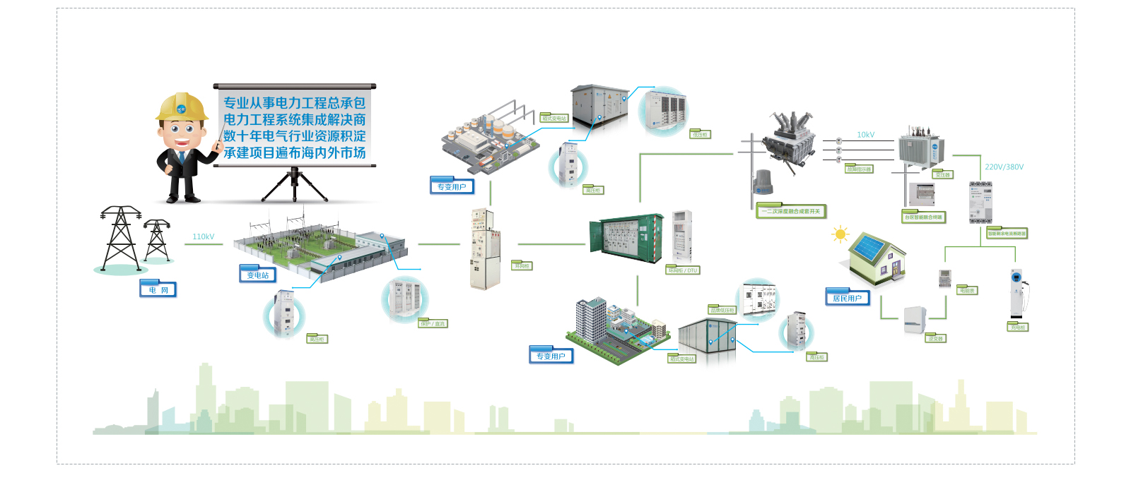 专业从事变电、配电、用电、微电网及高低压开关成套设备等产品的研发、生产、销售和技术服务。