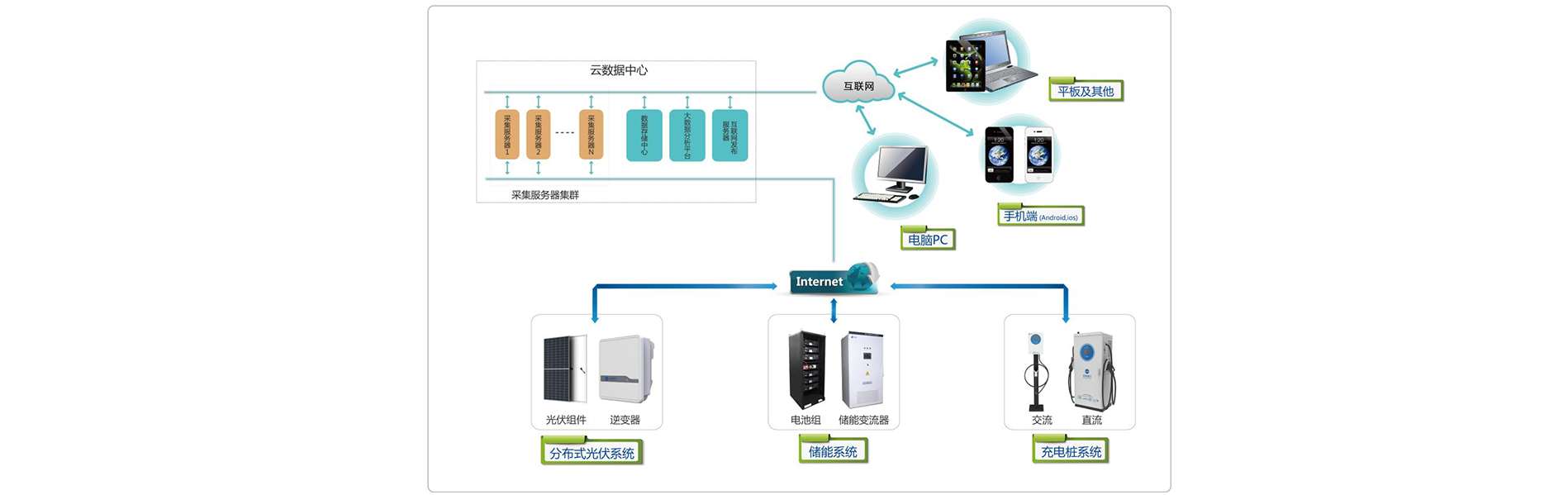 光伏逆变器、采集装置、储能设备、电动汽车充电设备、监控运维平台等全部自主研发,提供系统的整体解决方案。